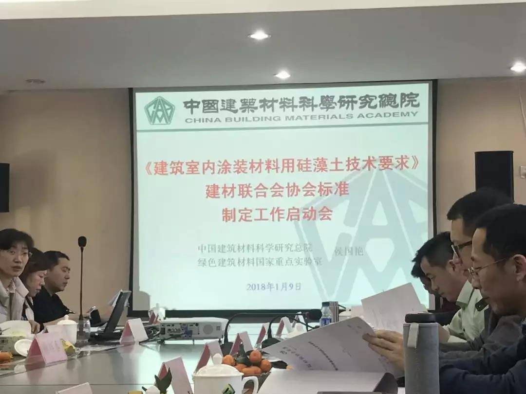 2018年1月9日,由中國建筑材料聯合會生態環境建材分會提出,中裝協涂料分會共同申請立項,各硅藻泥企業共同參與的《硅藻泥裝飾壁材施工技術規程》標準征求意見定稿會于北京朝陽區管莊東里1號中國建材研究總院綠建樓一層會議室圓滿舉行。